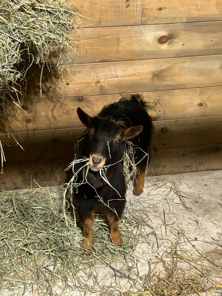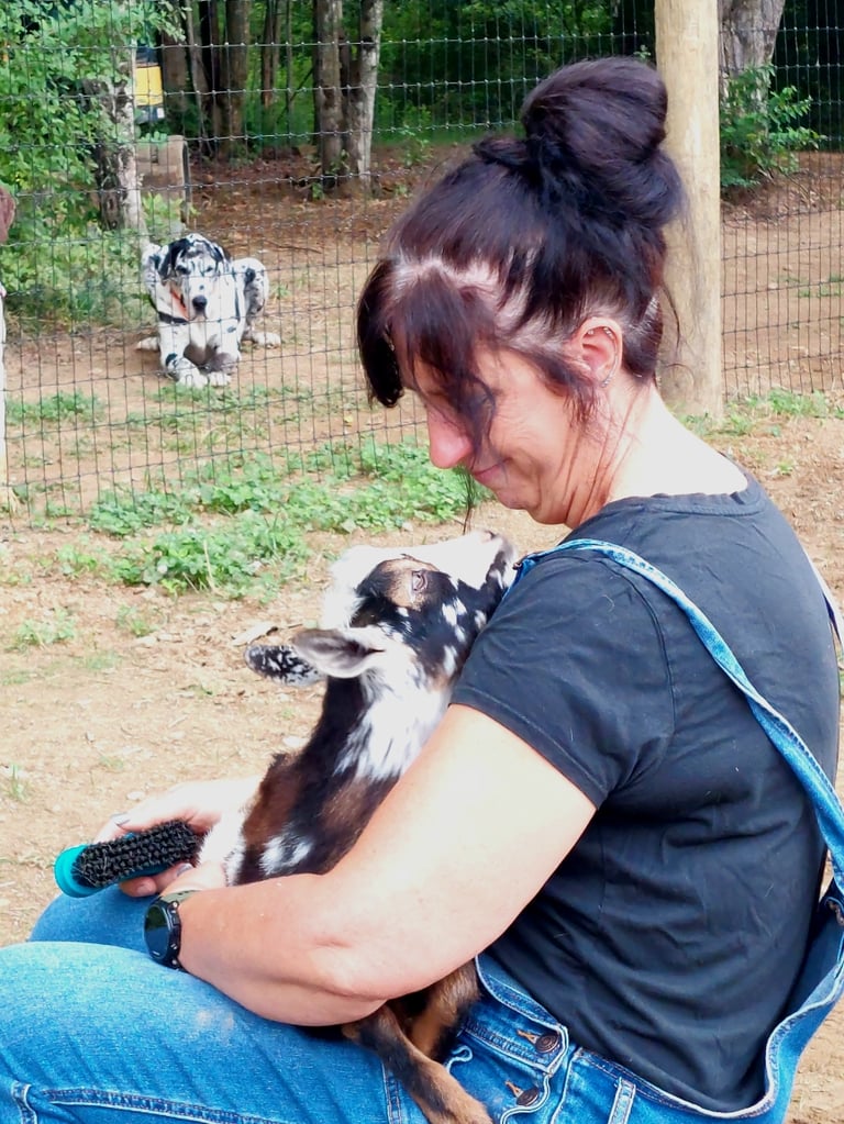 Explore our charming farm life with goats, chickens, and nature.